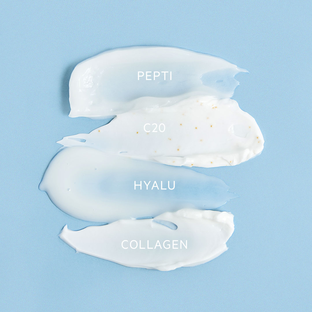 Low molecular weight hyaluronic acid hydrates and acts deep down to smooth fine lines and wrinkles.